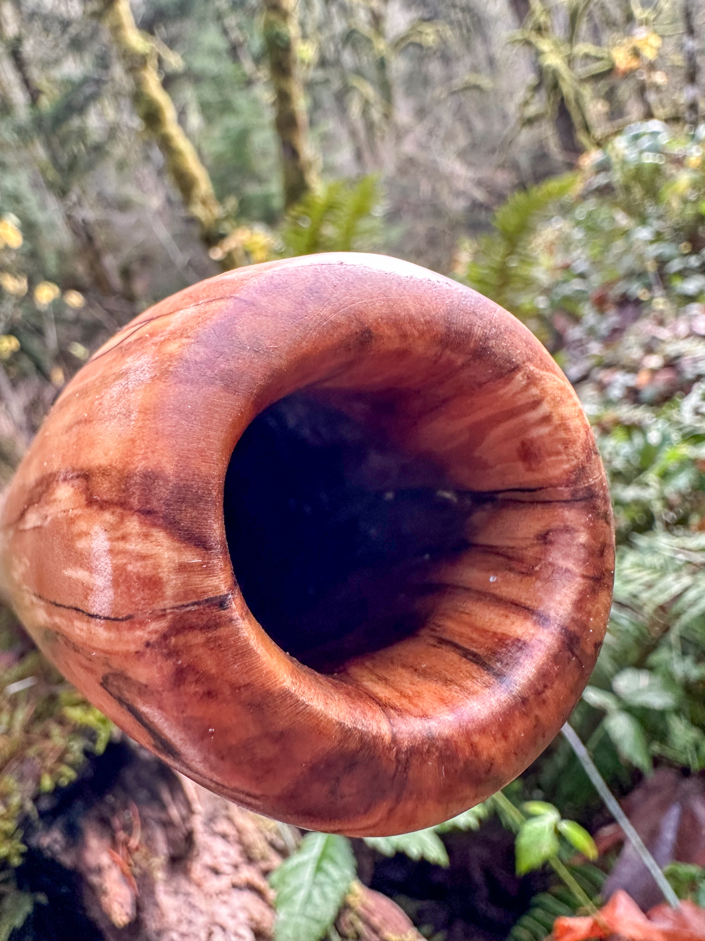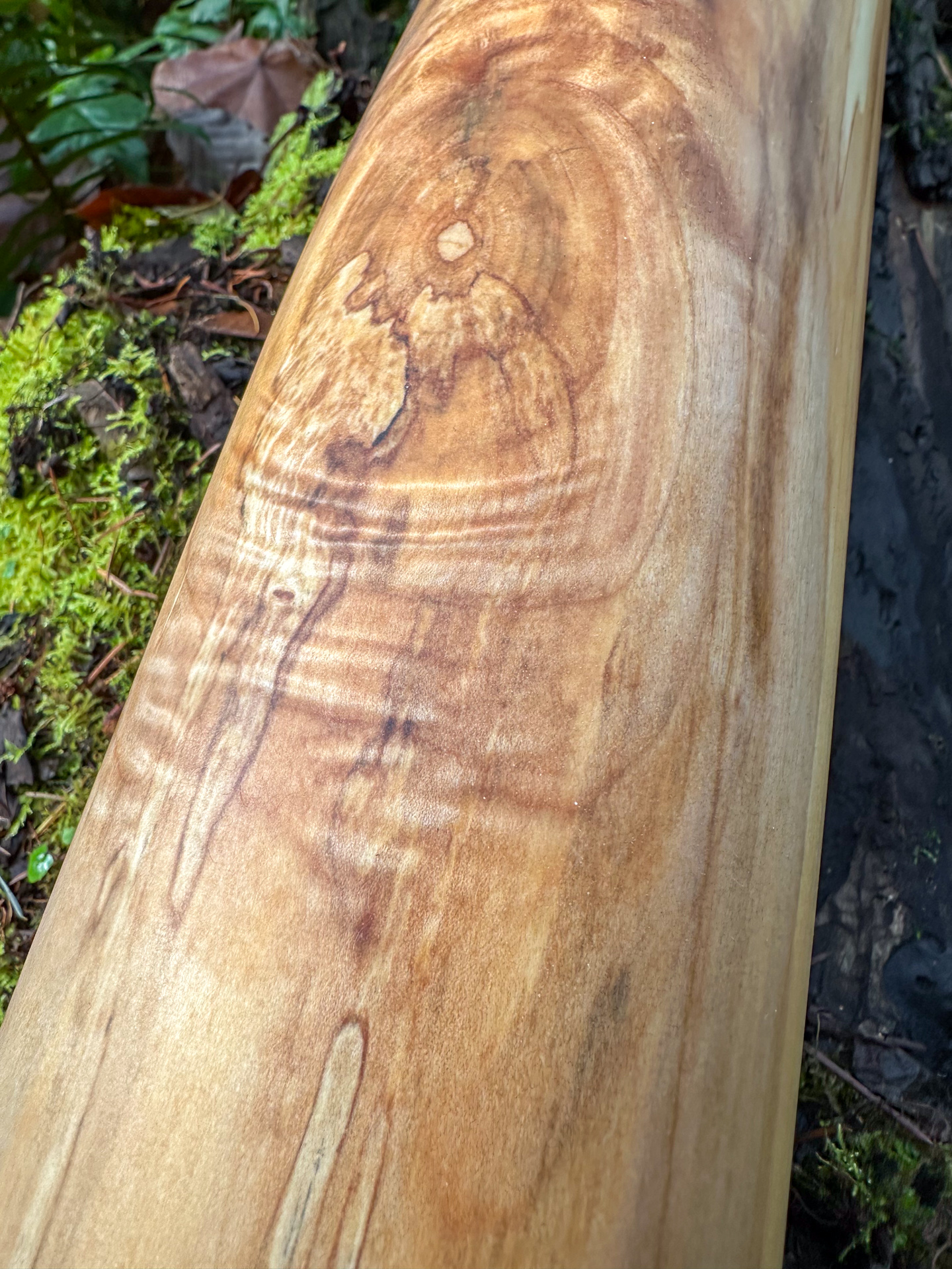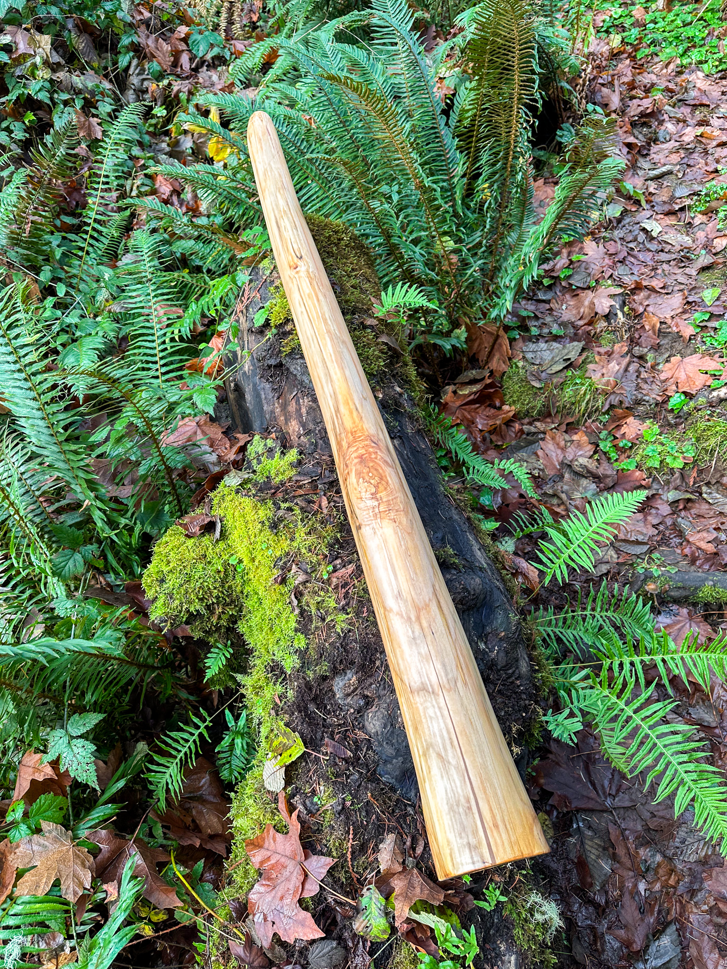 This is a very different shape for me to explore. I never gravitated towards big bore didgeridoos but recently I picked up a few Bruce Rogers didges and was surprised at how much I enjoyed playing them. I do have a few other big bore didges but there was something special about Bruces and I wanted to see how close I could come to following that inspiration, so I knocked out a few and I'm hooked. I assume these will teach me different playing styles and I'm excited to expand on my basic abilities. One thing I love with this big bore didge compared to most big bore didges I've seen is that the mouthpiece is super easy to approach with a gentle cone that keeps the business end from hitting your nose or chin. At 61 inches of length and 7 1/2 pounds it's portable and rugged enough to go on all your travels. Easy to play. Incredible vocals and harmonics. Good for all levels of playing ability.