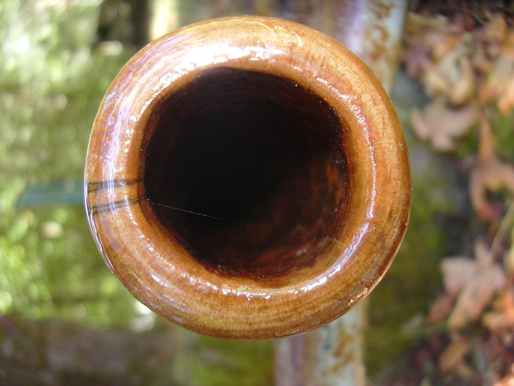 This didge has that big deep sound that associates it with earth power. It has incredible balance and so it's transitions from fundamental to overblown, or through harmonic ranges, or to trumpets are very simple and precise. The trumpets can be pushed hard and made brassy or can be just barely touched and be appropriately called 'tups' or ' boops'. The vocals punch through with plenty of volume but are not overly crisp.