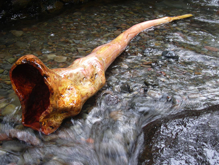 Take a good look at the photos first and then let me tell you that this thing sounds like a semi truck turned performance didge. Close your eyes and try to imagine the size as it's played. I could easily accept a guess of fifty feet. A fifty foot didge is practically unthinkable but let me tell you my friend the proof is in the pudding. It's overblowns just transmit so much power that even I feel fifty feet big when I play it. The tone is phat and solid. The trumpets come easy. The vocals pop right through. Absolutely outstanding!!!