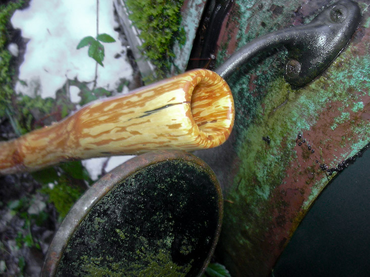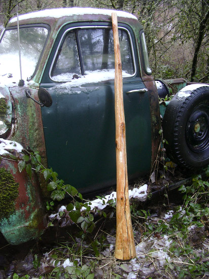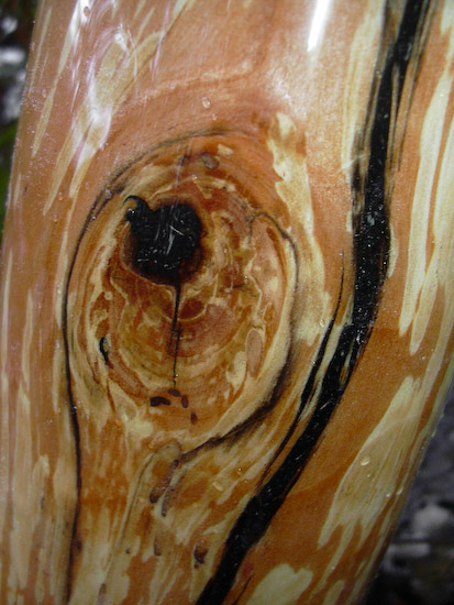 This didge offers the same excitement as standing on a huge stage playing through giant Marshal stacks. Something about the bigger than life delivery that gives it an incredible magic. Alder is very soft for a hardwood but makes for outstanding sounding didges. Alder is also lightweight and very beautiful. My daughter wanted the fills on this piece to be purple so we added blue to red but ended up with brown so we adjusted them to black but it started a pretty hilarious thread in which this didge was being created to honor the unity of the Red People and the Blue People, and the Brown and Black, which led to discussion of the forming of an Esperanto gang, hellbent on unity and universal inclusion so you're either with us or with us, which is it?