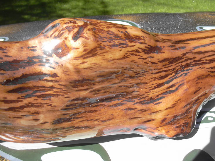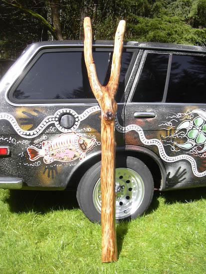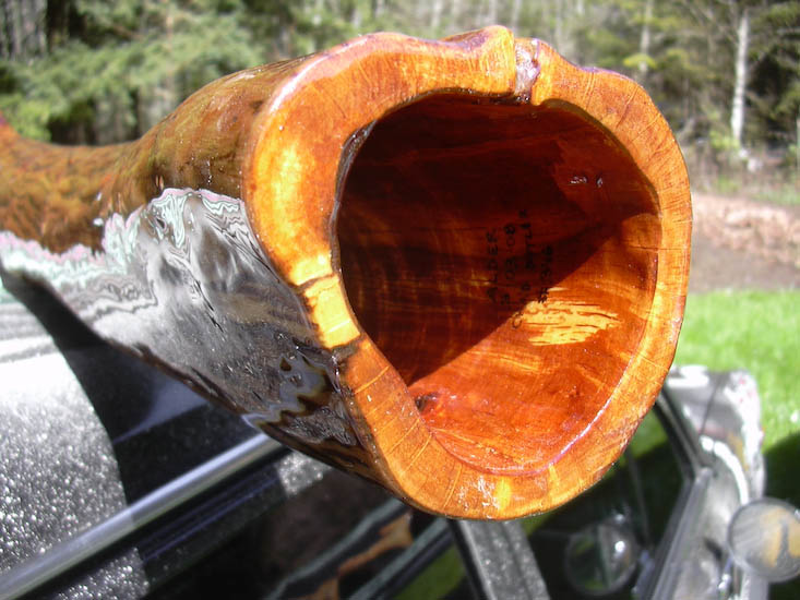 The alder is spectacular in appearance. It had shrunk down inside it's bark leaving tons of longitudinal indentations. I only had to work the outside for just the few inches leading to the mouthpiece so I barely sanded the stick, leaving the indented crevices darker as accents and the result speaks for itself.