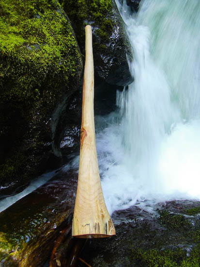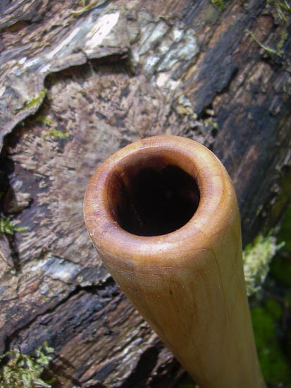 Loud and powerful. More controllable and articulate than a firecracker. The trumpets and overblown are slightly bright to the drone. Vocals project right through. Responds well to light play or rip it up throwdown. Encourages faster play with plenty of diaphramatic overblowns. Oiled inside and out with pure oils of tung, linseed, and citrus. No checks or fills , just pure organic beauty. No batteries necessary, naturally amplified. Ships internationally cheaply enough that I'll cover shipping on this one to just about anywhere, as I do with all domestic (lower 48) orders.