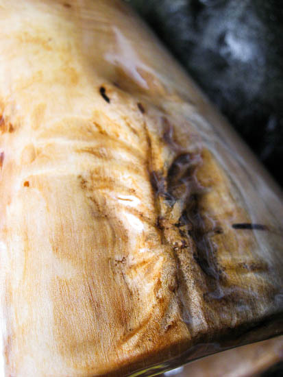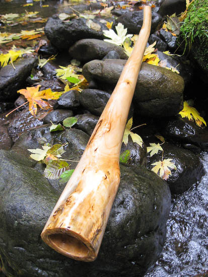 Check it out, the bell end is modest, which limits the buildup of bass response allowing the mid-range and upper ranges to shine through creating concert quality accoustics. Frank Thill kept trying to instill that understanding and influence over my crafting, and even though I understand it fully I have a hard time not just creating the most fantasmagorical art/sound sculptures imaginable. This shaping and sizing exhibits the utmost restraint resulting in a very refined recording quality instrument while still delivering a good loud projection. Looking closer at this supposedly modest instrument yields a deep appreciation of the spalting, figuring, and velvety rippling waves of grain. Does everything well with perfect balance. Compares to a fine Bently motorcoach.