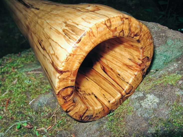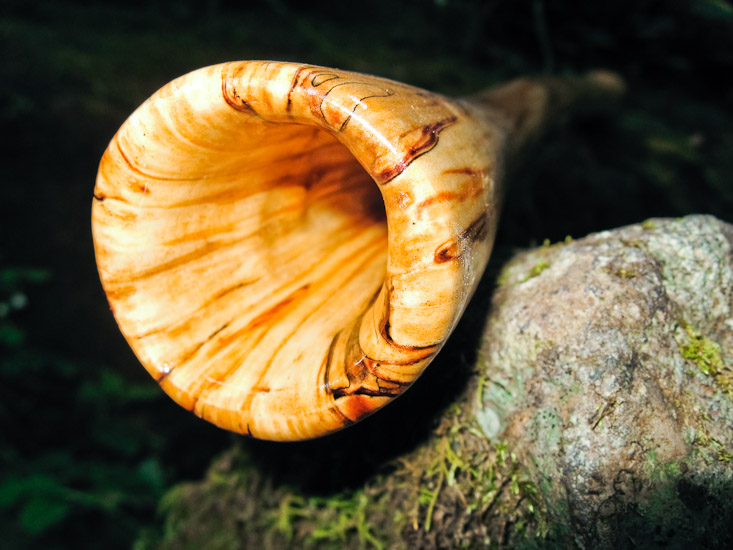 Although this didge looks little, kind of like a toy, it's a toy like a Trojan Horse. There's nothing subtle in this didge at all. It's ultra loud for this size of bell, and can create overblown notes that are mindshatteringly powerfull. A high backpressure makes super quick percussive playing very easy, and the matching trumpet is very comfortable. Excellent choice for rock-n-roll and noisy drum jams. A lousy choice for apartment livers with paper thin walls, or for chillin' at the sauna.