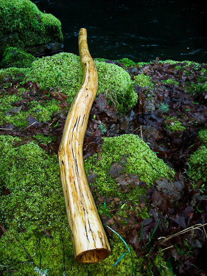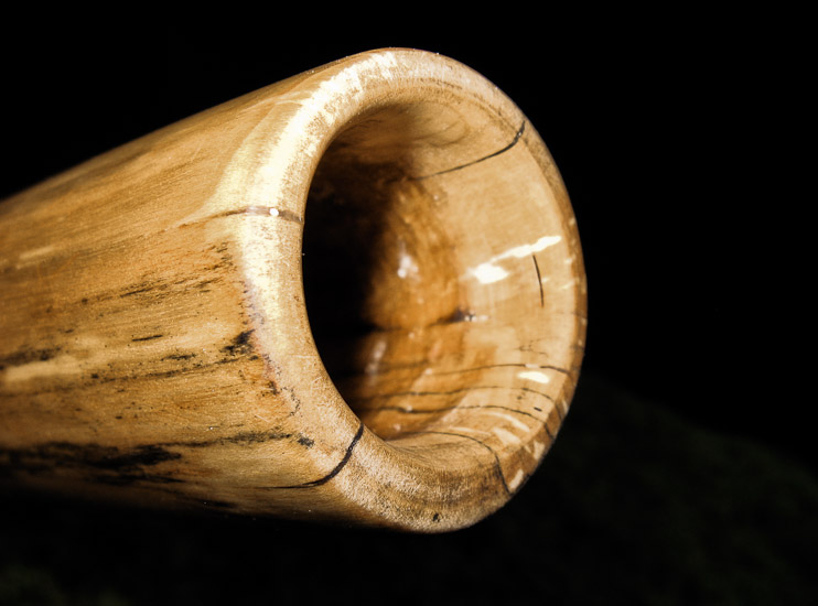 This didge is lightweight and easy to travel with coming in at just under 5 feet. The topend is fairly open and the construction is aimed at vocals and harmonics but I'd be a damned fool not to point out that the balance makes it an incredible percussive stick as well. It's characteristics make it a good choice for active sound therapy work. The mouthpiece is slightly ovalized for a nice fit. The entire stick is resin coated (de-glossed) for durability but the mouthpiece is bare wood oiled with natural oils of tung, linseed, and citrus for a better lip contact.