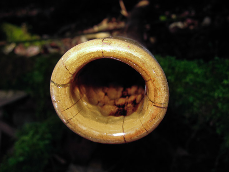 I mentioned on my previous sticks description that Frank Thill has been a big inspiration to my crafting but I have to admit that Ondrej Smeykal is more responsible for this one, the very carefully crafted conical graduation of the bore giving excellent balance and incredible control, and the very thin walls up top for responsiveness. This is probably the easiest B you'll ever lay your lips too, it plays with more of the characteristics of an E, willing to absolutely shred or take it very easy. You can very easily pressure up to the trumpets making them seamless in faster rhythms and the overblown is powerful but well matched and so makes into a nice kick drum for them diaphragm slaps.