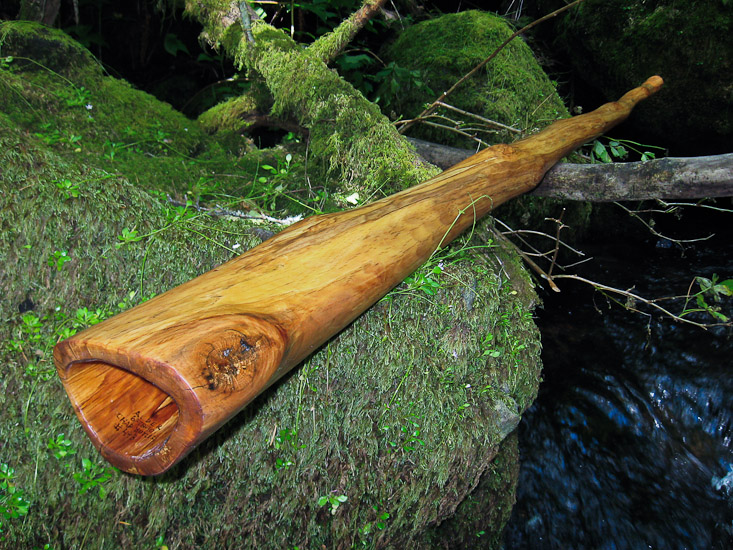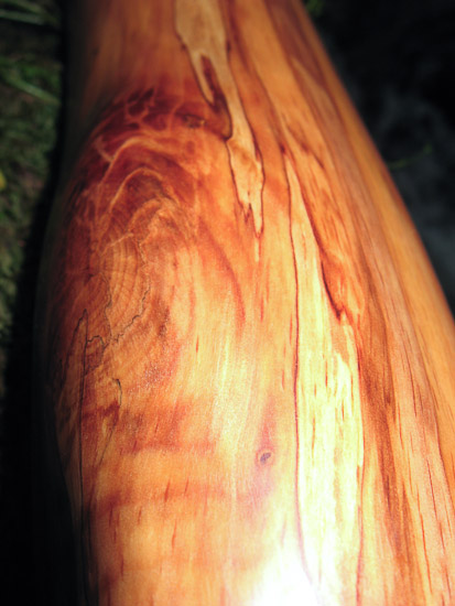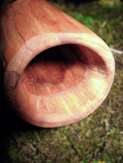 I made this one to be thin and responsive like a well crafted agave, but with the supported bottom end of a hardwood. I hit the nail on the head. This baby is ALIVE! It rides the edge between being well balanced or a bit feral. The nice thing about this balance is that you can push it where you want it. The trumpets and overblowns can fit in nice and soft or can be blasted and abrasive. More of a busking/hiking focus with this lightweight champ!