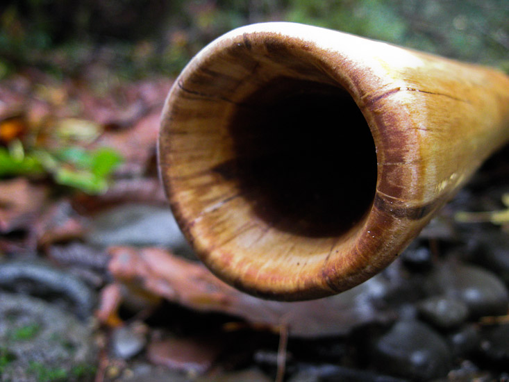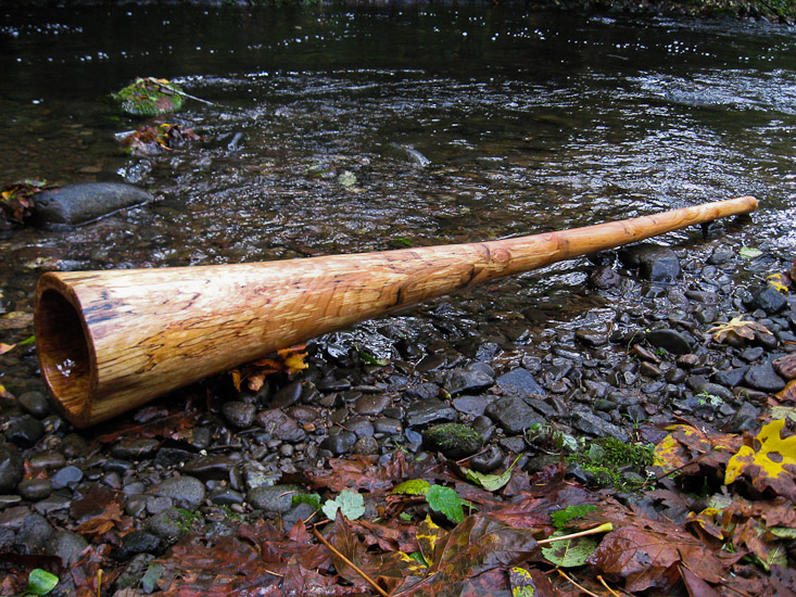 Get ready for lies- When crafting this didge I subsisted on a diet of King Kong's balls and Bruce Lee's sweat. The first time I hit the overblown I created counter waves that absorbed the destructive waves from the HAARP project and foiled the governments evil plans. CANNOT be used by players with pacemakers. Detects (and destroys) silicone boobs. Okay, so I said I was going to lie, but lies and/or jokes are only funny when they mimic reality. This didge really is extremely powerful. The overblown that it projects is a very rare ability that my crafting style and wood choices seem to find much more commonly than the wider market. An incredible percussive stick. Need I say LOUD! Beautiful coloring to the woodgrain. Oiled mouthpiece.