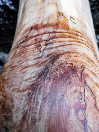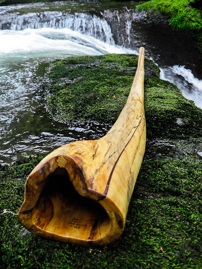 The wood on this one is freakin' beautiful too. It's a piece of Maple that I pulled off of my riverbank a few years ago with plenty of spalting and fiddleback.