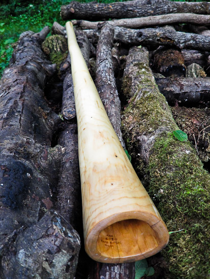 A full on tugboat may look small compared to a big ol' barge but actually a tugboat is pretty sizable enough on it's own. It's massive engines can command enormous power through the nimble controls of it's Captain. This didge is like that tugboat. It's dense ash walls and careful architecture summons the weight of the ocean with explosive potential. Easily transitions into trumpets and the overblowns can remain supported or pushed to clipping. This is a really awesome didge for blunt style playing.