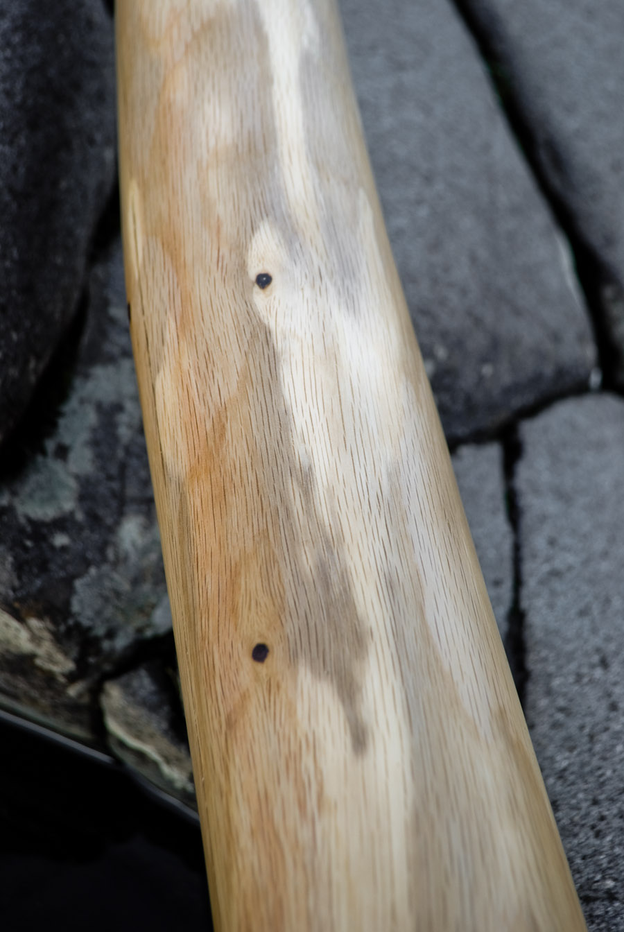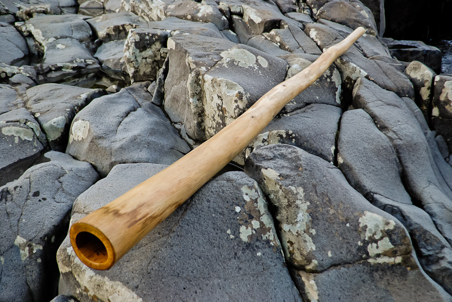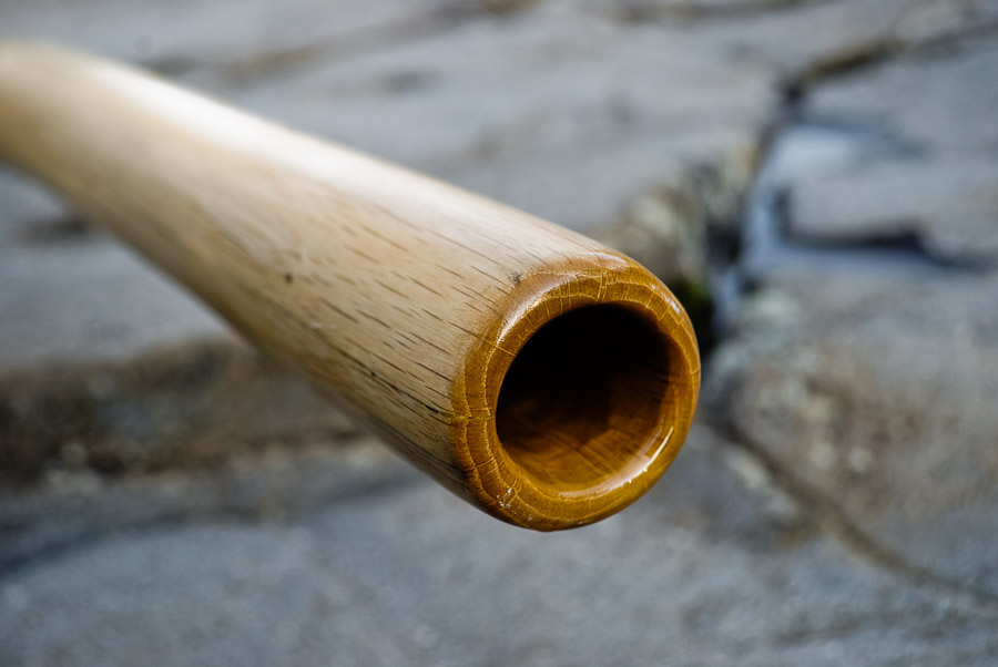 This is an easy comfortable low A. About as long and low as practicably useful. Much lower than this and they get tricky to play. Much longer than this and they don't fit into your car anymore or even stand in a corner inside under normal height ceilings. Very good backpressure for such a low didge and a very solid well supported tone. All the vocal and harmonic fun you'd hope for in a low stick and a whole stack of trumpets. I wouldn't recommend an A for someone as their only didge but it's hard to believe that the low end of your collection could be rounded out any better.