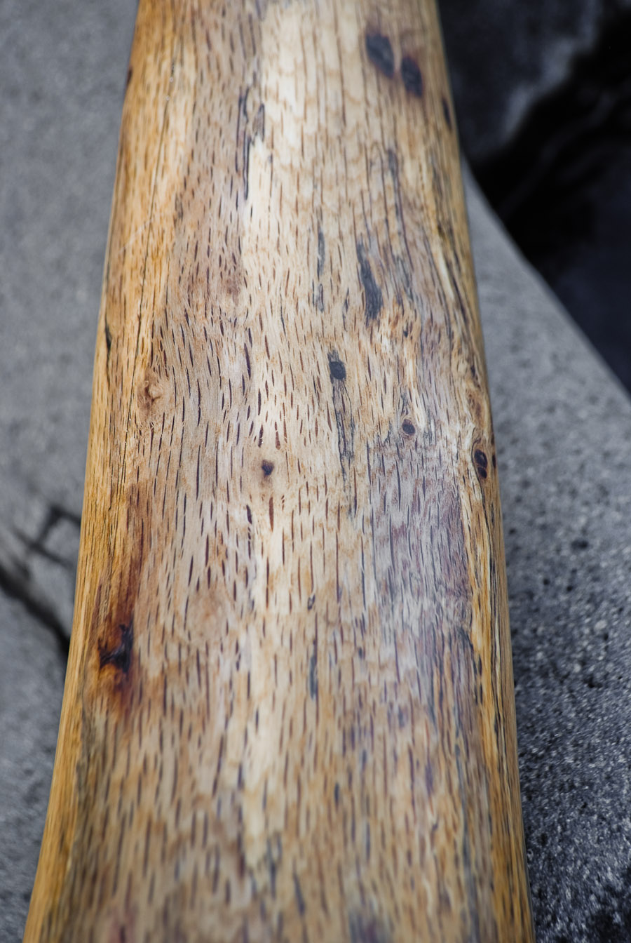 This killer Bb gathered mojo from Zachery Bainter for the past two years. He utilized my trade-in deal to swap for a monster didge this year at In-Didj-In-Us. It's in near perfect condition. A few miniature scratches which I'll sand and re-coat. It's a very easy maintenance task that any of my customers are capable of. My final exterior coat is Minwax wipe-on poly, clear satin. This finish allows for touch ups and creates a very pleasing tactile interaction. I'll always do whatever I consider to be the best, and this has been it for a long time running. I'm very open to sharing information on didgeridoo crafting and maintenance. I'm not into just selling didges. I prefer having my instruments be my artistic expression, and then sharing that gift with community. If you and I are new as community, welcome hOMe!