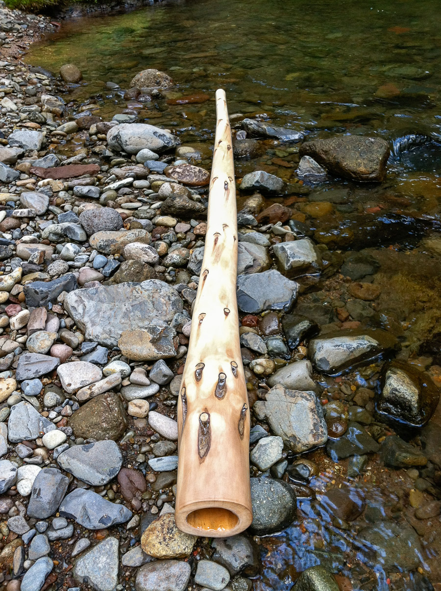 I'm working on building a low F for a customer and this is part of my study in getting that low while maintaining easy playability, excellent characteristics, and a somewhat reasonable length. A low A is actually a very nice exploration in playing low keys. It's low enough to inspire different playing styles yet not so low as require different playing techniques. Right away this will such you into vocal harmonic exploration. Such a hauntingly deep sound.