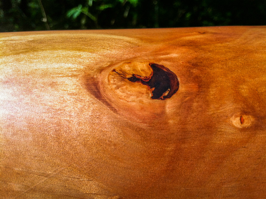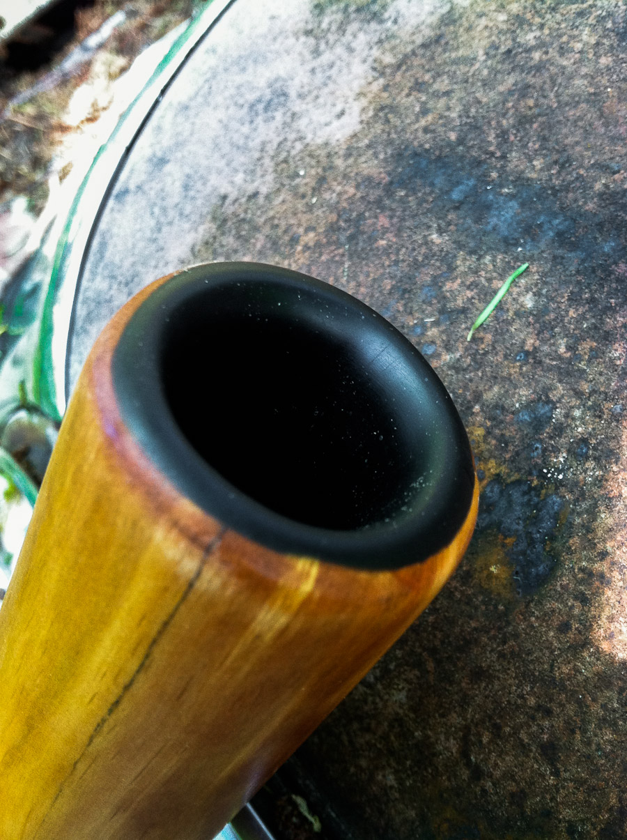 The very first impression about this didge is about how comfortable it is, not like my other didges are a pebble in your shoe. The comfort is more than just the way the mouthpiece fits or how it feels in your hand. The comfort comes from the ease of play and the well supported tonality. I carefully tune the wall thicknesses particular to each section of the didge to create the ultimate in responsive feel and tonality. The trumpets here are well matched and easy to hit. The overblown can also be well matched or pushed hard for effect. This is performance and luxery all in one beautiful package.