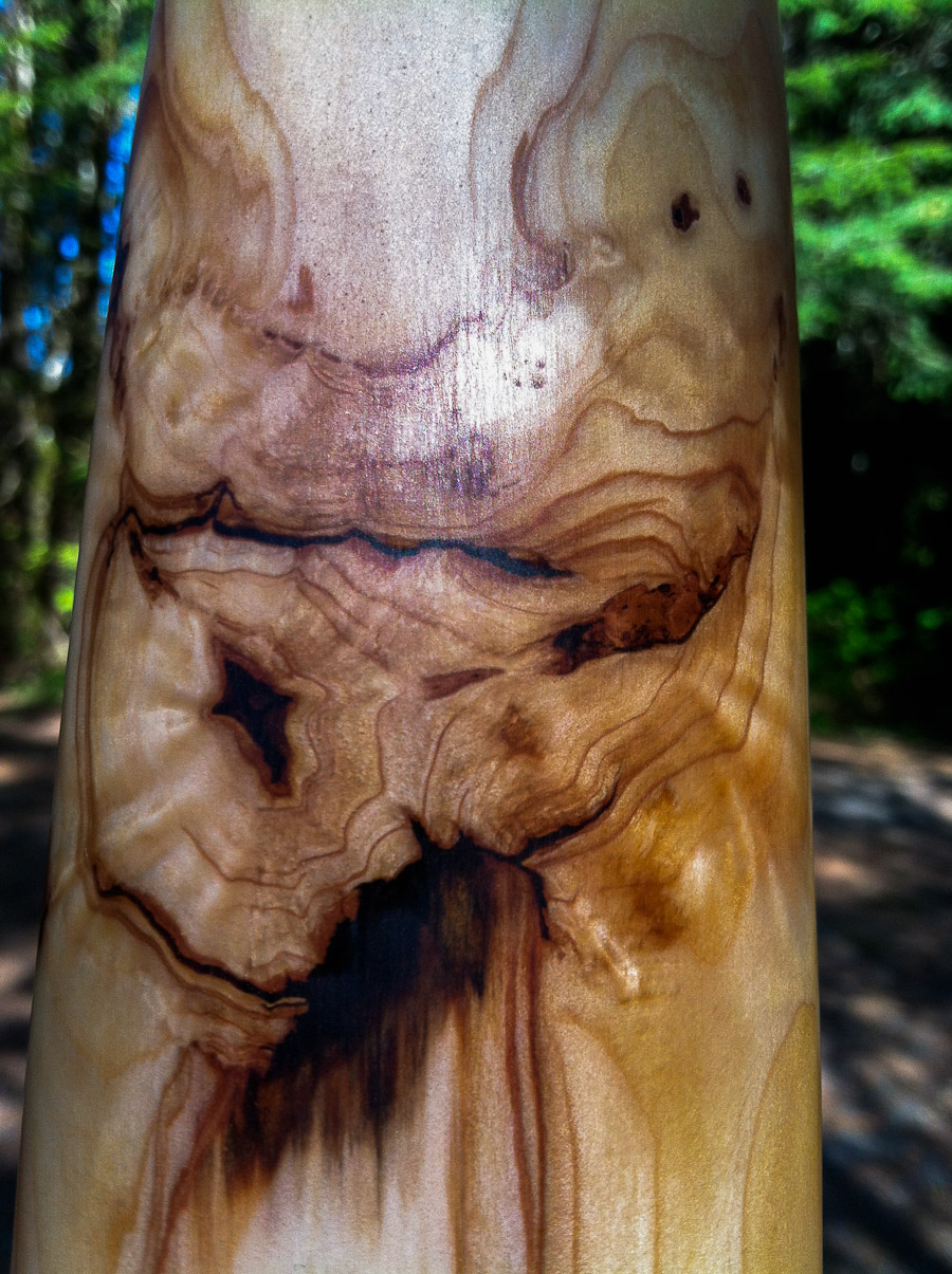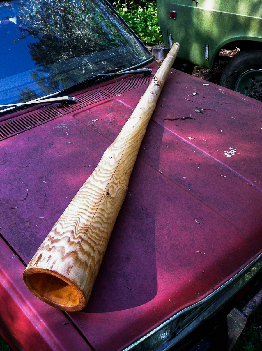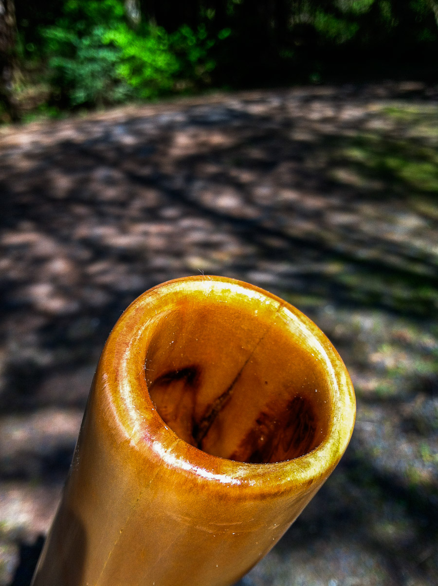 I made this one for my friend Jerry. I wanted it to be percussive like what I'm good at but I also wanted to open the topend bore a bit to maximize vocal clarity and projection. Key of Eb with a matching trumpet. This is for him as a singing stick. He's a real student of didgeridoo, and a bicycle racer too, making at least two passions we share. I hope he loves it.