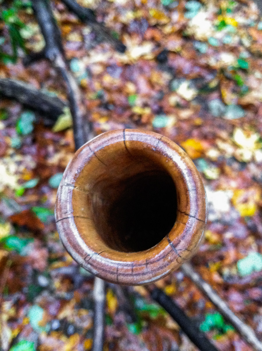 It's like this thang is plugged into a an amplifier and the knobs are up. So freakin' loud and powerful. Did I say loud? It's articulate too though. Reacts really well to slight pressure changes. This didge will make any hack player feel like a superstar. And will make any superstar double dope. Really dramatic overblown. Clear vocals. Bouncy backpressure typical of a straight cone. Solid built. Nice and heavy, for the sadistic hiker, and moreso for the audiosnob. Tends towards percussive but like I mentioned about that pressure control and the vocals.... it's a one-man fistfight.