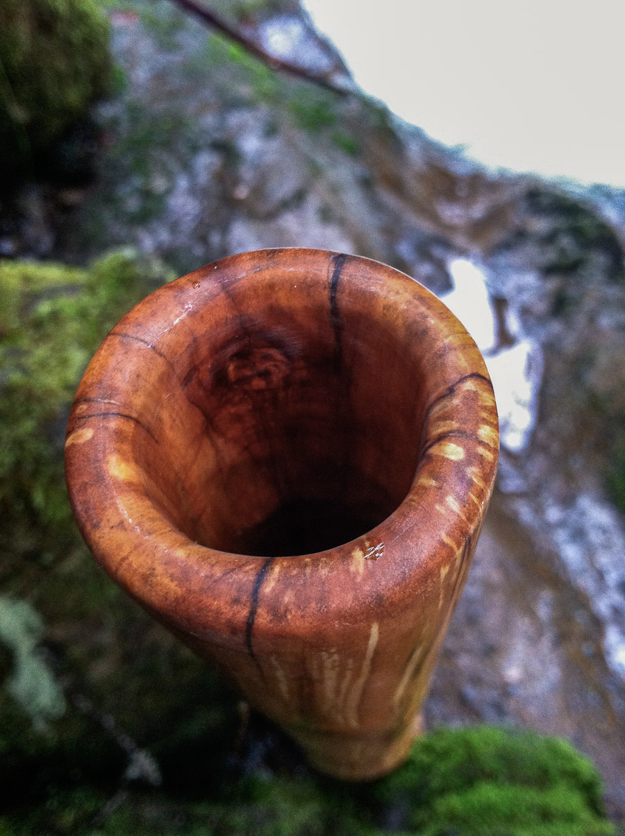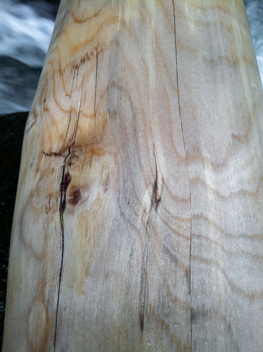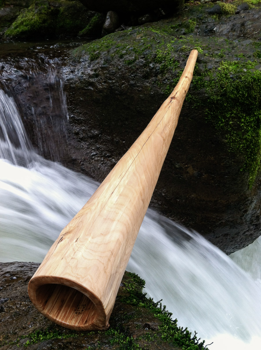 This stick is comfort, performance and aesthetically beautiful. It represents the knowledge and intuition I've gained in having carefully crafted well over 500 hardwood didgeridoos. This shape creates a very dynamic opportunity for a player of any level to truely 'get it on'. The softer density of Alder is a good counterbalance to the agressive and sometimes abrasive qualities of epoxy coated interior bores. Each instrument has to be carefully asseseed for shape vs. woodtype and intended results for coming up with wall thickness tuning along with several other minor tweaks which can make all the difference between a good stick and a great one.