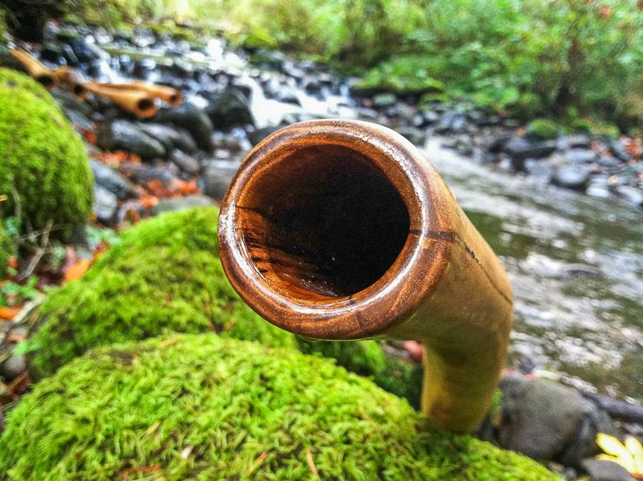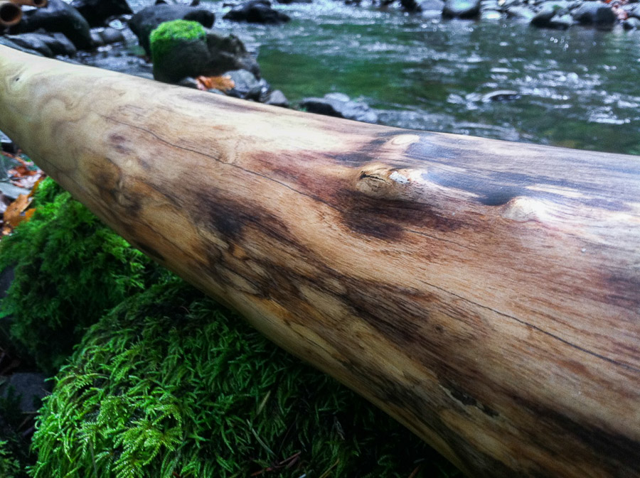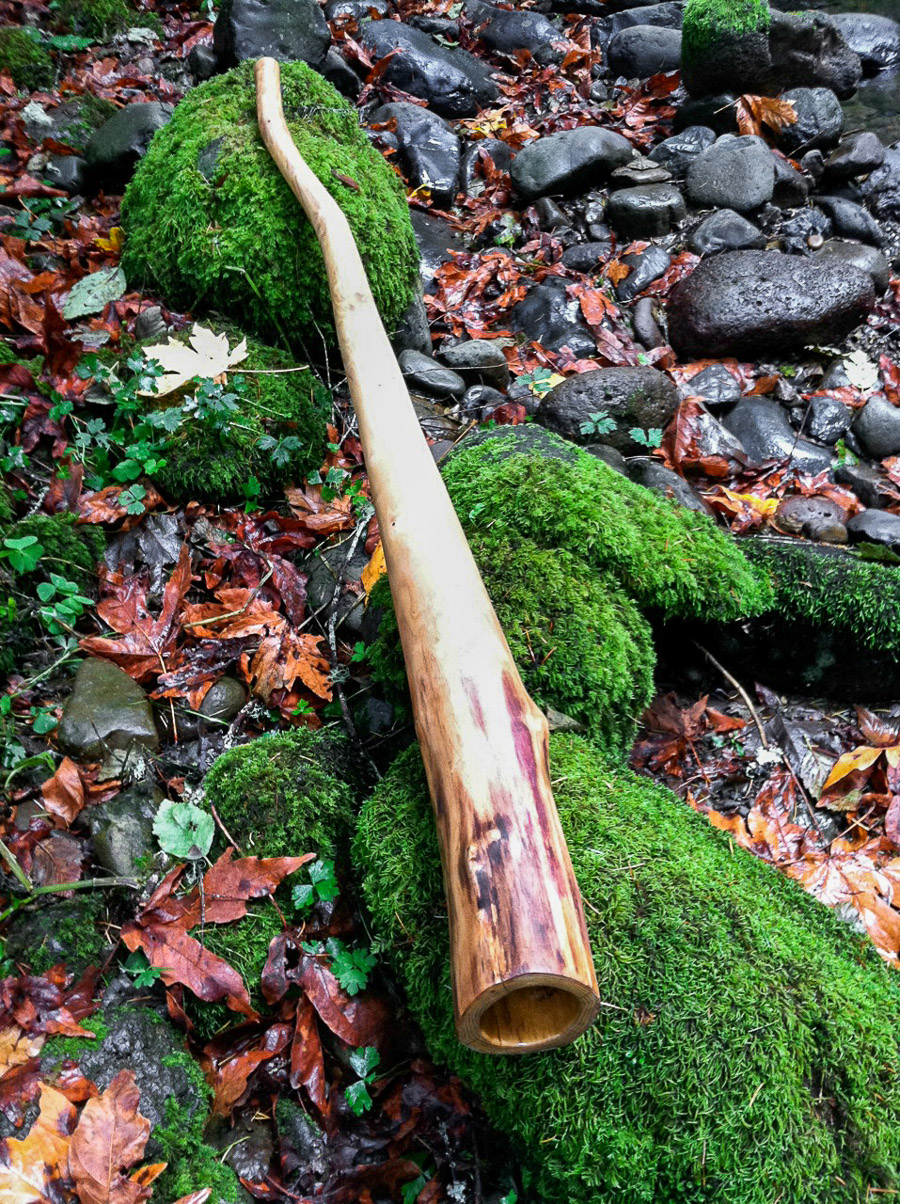 First up I should mention that the tuning on this plays about 30 cents above a perfect D. That's usually only an issue for someone in a band setting where it could potentially drive a few people nuts, but for almost every setting if it feels good it probably is. And about tuning, you should read an article about didge tuning on my friend William Thoren's website- wetdidgeridoo.com He's got tons of great articles and videos on there. With this didge I stayed with the aim of professional quality sound keeping a minimal bell so as to not bring in too much bass and squash the definition of the upper and mid range responses. Very well behaved, comfortable, and louder than you'd expect from this bellsize. Nice overblowns and plenty of support for it's power, all of this complimented by a gentle natural shape and beautiful finish.
