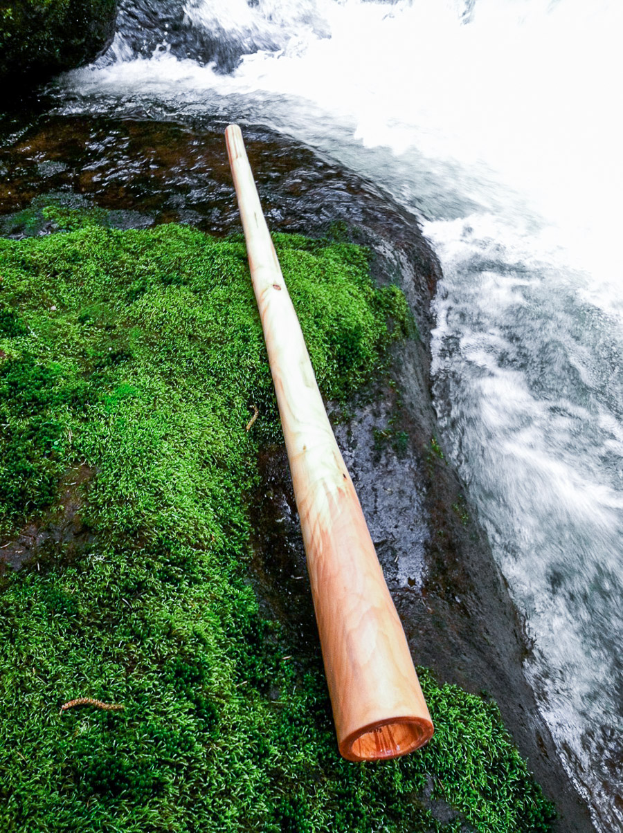 This is a very interesting didge to me. I've seen Ondrej Smeykal practice isolations on his didges for hours on end. One sound, repeated over and over. Getting to know that movement and that result so incredibly predictably that it becomes a natural language. This instrument brings out that same student in myself. It makes me want to practice isolations, to focus on every individual sound seperate from the wall of sound. This is very heavy for Alder, but not impractically heavy like Eucalyptus. The top end is somewhat thin for lively response. The middle and lower end are thick to contain the power and sonicly deliver with a solid timbre. It puts out exactly what you put in. The player has 100% control. Vocals are crisp. There's a nice pressure fold at the overblown for rhythmic attack. Whether sprinting and screaming in superpower mode or whisperwandering in meditation this didge is solid and grounded. An excellent tool for an artist looking to get serious in honing their talent.