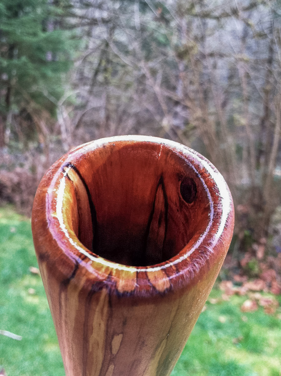 I'd be totally fine if this was my only didge. I love how it's so smooth and solid. The first trumpet and the drone are absolutely bang on Eb. The overblown can be nicely raked or whipped out hard for a very dramatic feature within the fundamental. I believe that Eb is one of the most common tunings for Blues, as it has an emotional grasping, perfect for inner journey.