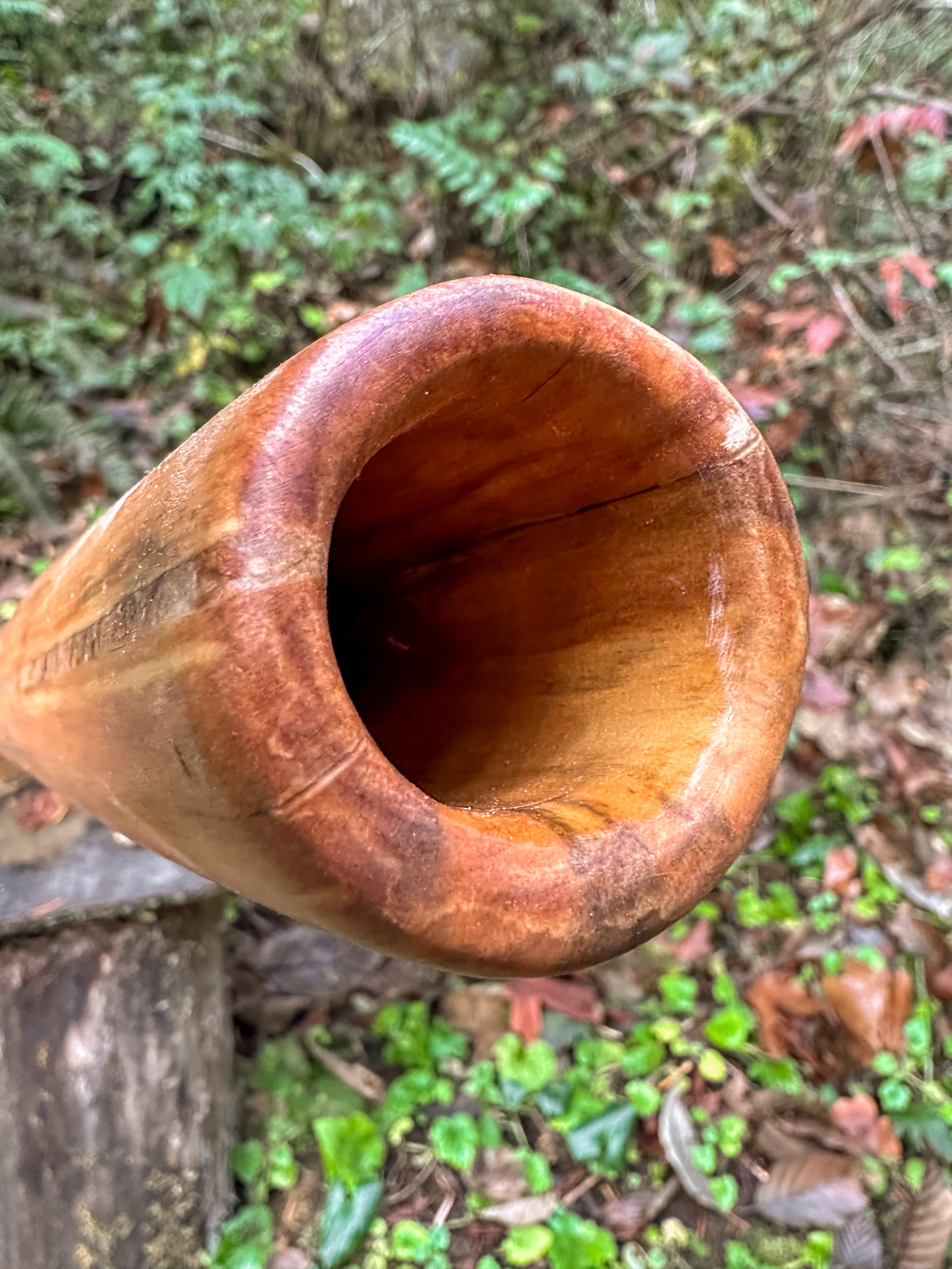 This didge has a slightly larger mouthpiece for players that prefer that. The bore is somewhat more open than the photos might suggest which lends to excellent vocal projections and plenty of nuance to the drone. The solid heft of the Maple ( 8.3 pounds) gives it nice tonal support. Its beauty and abilities will definitely impress your friends, and if you're good it'll impress your neighbors too.